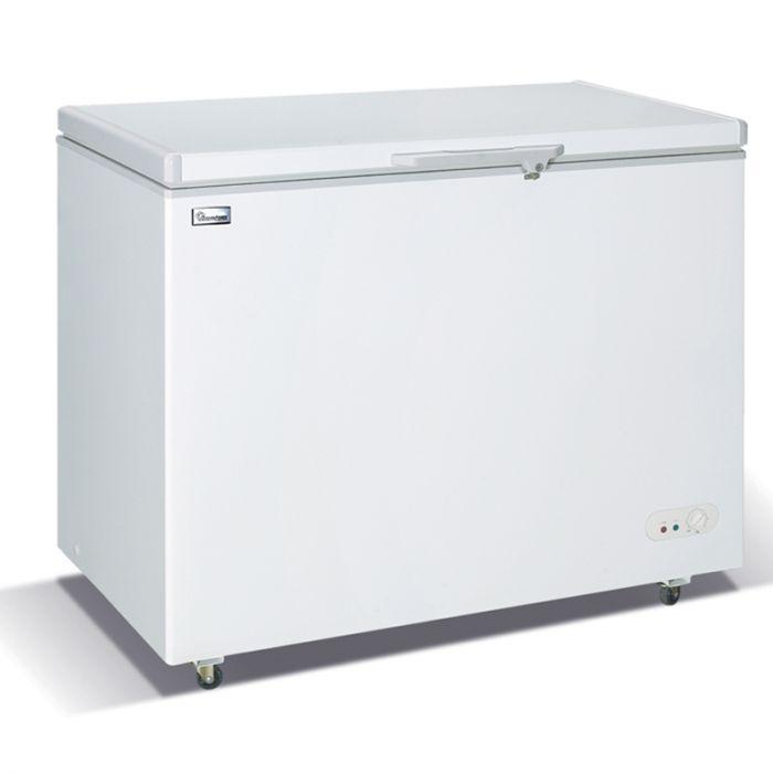 282 litres, Aluminium interior, Lockable door + Glass display, Castor Wheels, Low noise, Cool pack + Basket rack